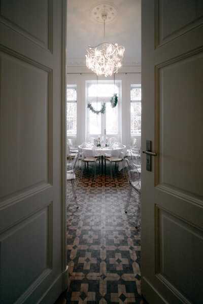 glowing candlelight, refined florals, and whispers of Christmas charm. A fusion of modern artistry, classic grace, and the serene beauty of the season.